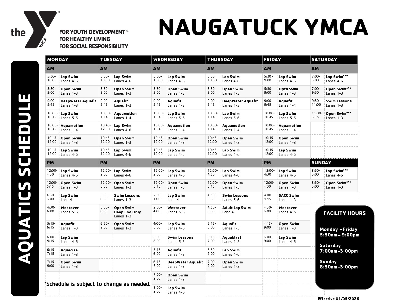 Pool Schedule Effective January 5th 2026